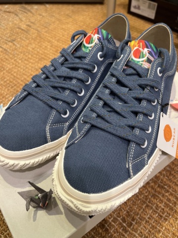 平和を願い折られた折り鶴は、年間10トン広島に贈られます。 大切に保管された折り鶴を有効活用する取り組みが2011年から始まりました。 スピングルは広島のメーカーとして、折り鶴から再生された糸、生地を一年以上の歳月をかけ生地メーカーと開発し、スニーカーへと生まれ変わらせました。 アッパーは丈夫かつしなやか、一味違った滑らかな肌触り。 ライニングは吸汗性に優れ、肌あたりの良い機能性素材を使用。履き心地よくなっております。 平和のメッセージを、折り鶴再生スニーカーに託して、広島から世界へ。 ぜひ一度お試しいただきたいスニーカーです。 みなさまのご来店お待ちしております。